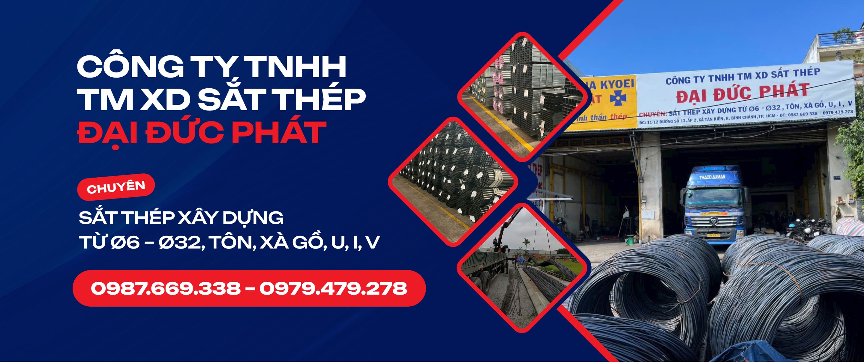 Công ty TNHH XD Sắt Thép Đại Đức Phát chuyên cung cấp các sản phẩm sắt thép xây dựng chính hãng từ các thương hiệu uy tín như Hòa Phát, Pomina, Vina Kyoei…